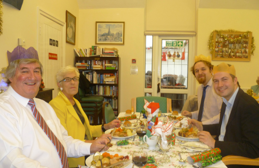 Our hardworking Councillors Robert Alden and Gareth Moore visited Mason Cottages today to join residents for the Christmas Lunch at the Community Hall. Gareth, who is also a trustee of the Josiah Mason Trust which runs the cottages, said “we were delighted to come down and share Christmas Lunch with residents. We try to make sure we are around to help the local residents during the year with any issues that come up and it is an honour to also share in their party”.