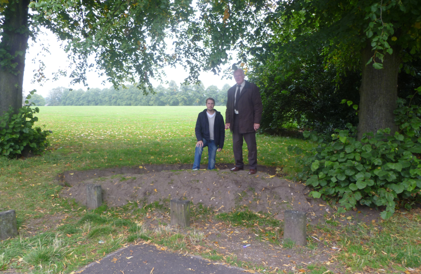 Over the years dumped cars and quad bikes racing on Short Heath Park has always been an issue. That is why Robert and Bob, working with the local community secured funding a few years ago to install the fence that is now around the park. This has done a good job of stopping cars and bikes, sadly however recently the wooden sleepers around the car park have started to rot. This has allowed cars to get back onto the park. To tackle this Robert, Bob and Gareth have jumped into action and are sorting two solutions. The first is a temporary one, a mound and trench has been cut around the car park (pictured with Gareth and Bob inspecting the work) to prevent cars accessing the park. The second is to secure a fence around the car park making the site secure in the long run. This process has been taken forward and on Monday our hardworking local Councillors met with Council officers on site to discuss the new fence. Costing’s for the fence are now being arranged and the project it hopefully moving forward.